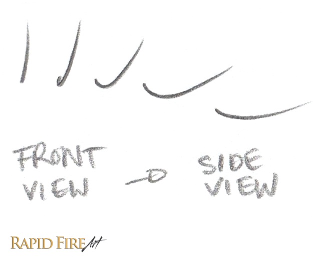 We’re going to draw hairs going in several different directions. Using a sharp 2B pencil, let’s start by drawing a single row on the bottom and go from left to right. These hairs grow in the upward direction and start pointing downward near the end of the eyebrow.