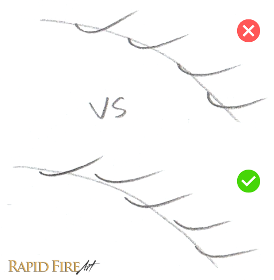 Slow down and carefully plan the placement of each stroke you make and try to make them as unpredictable as possible. Avoid predictable patterns like the ones below.
