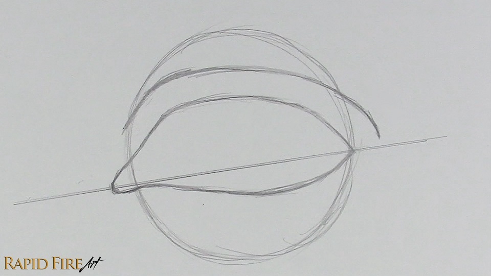 Decide on the slope or angle of the eye. Use a ruler to draw a line through your circle, keeping it fairly close to the center.