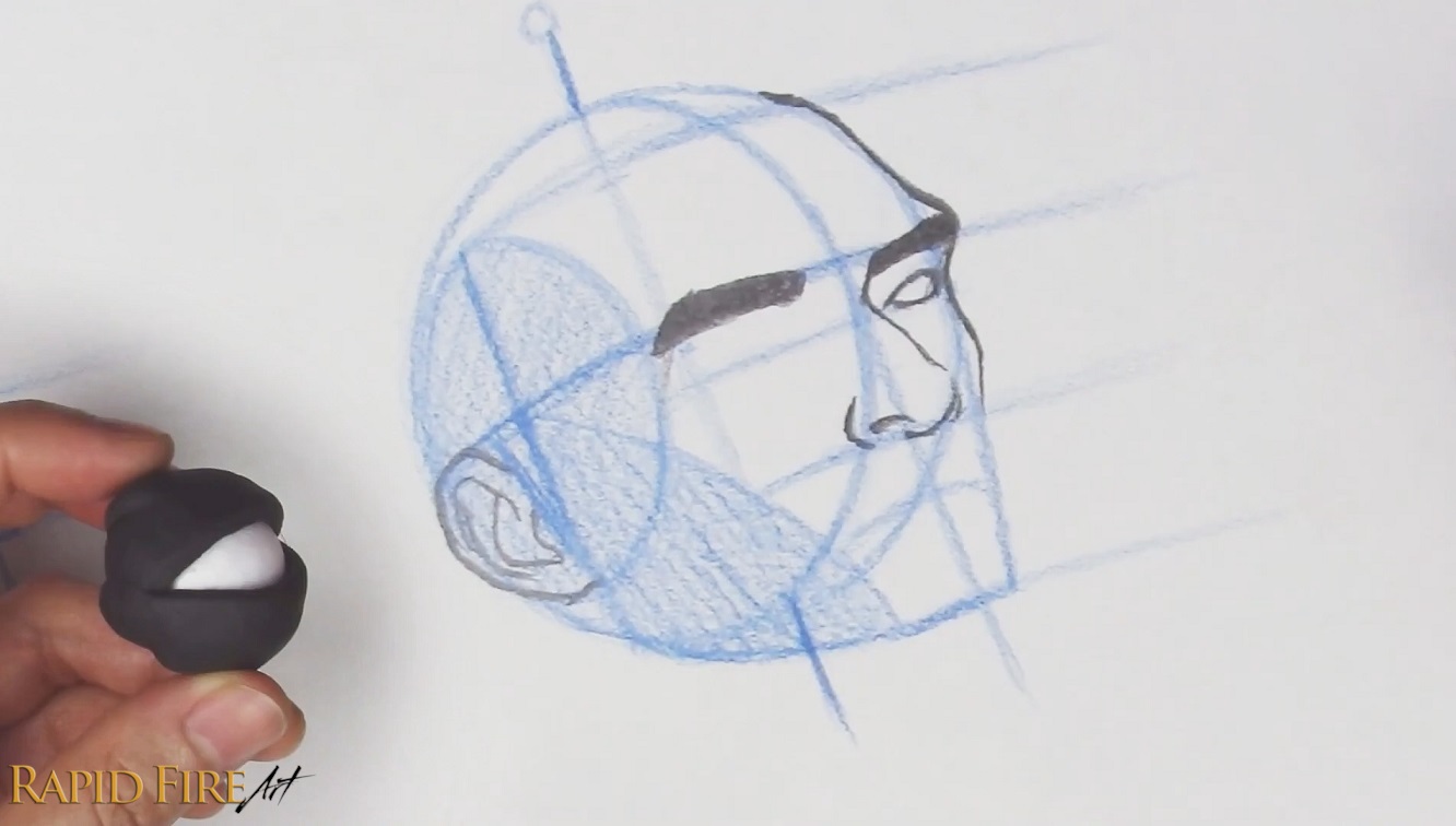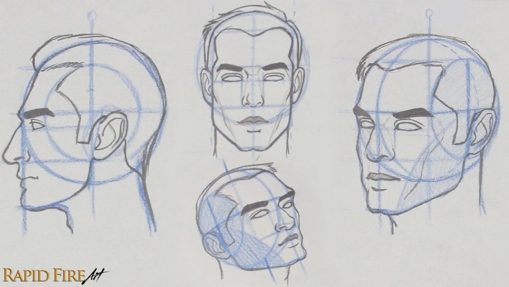 These lines help inform where facial features should go when the head is tilted at any angle. Find out more by exploring my tutorials on drawing the head.