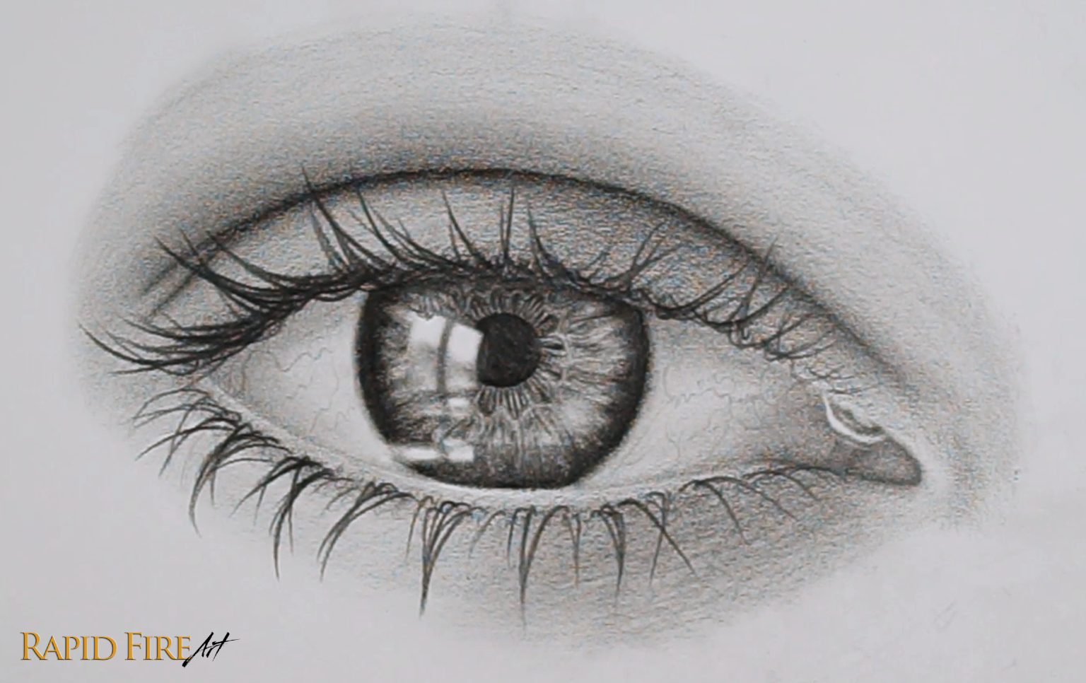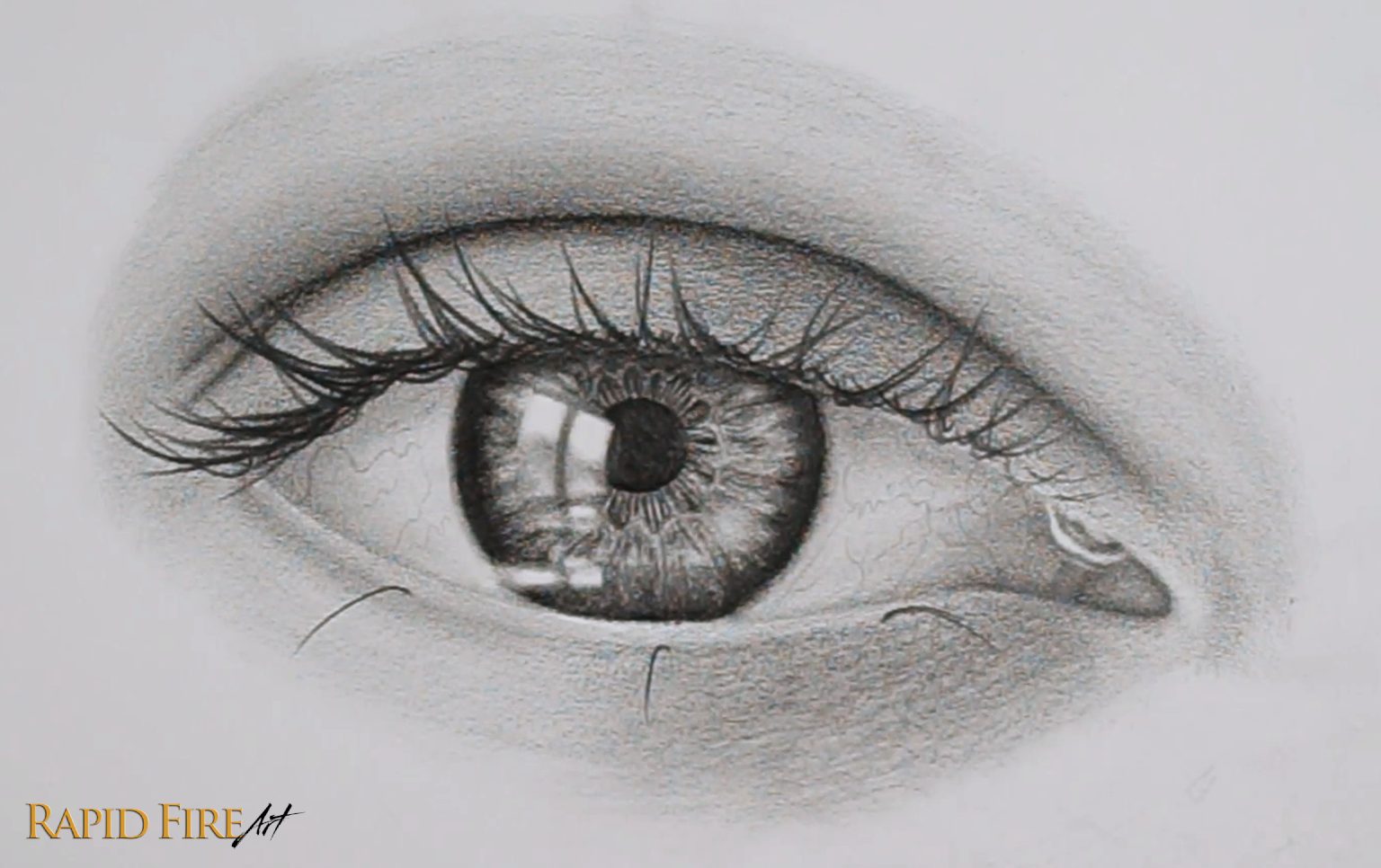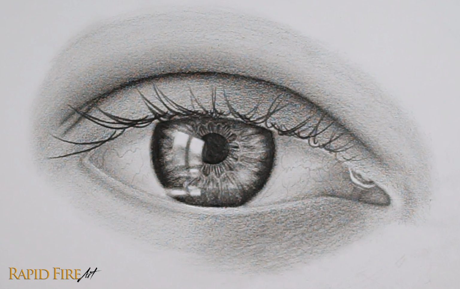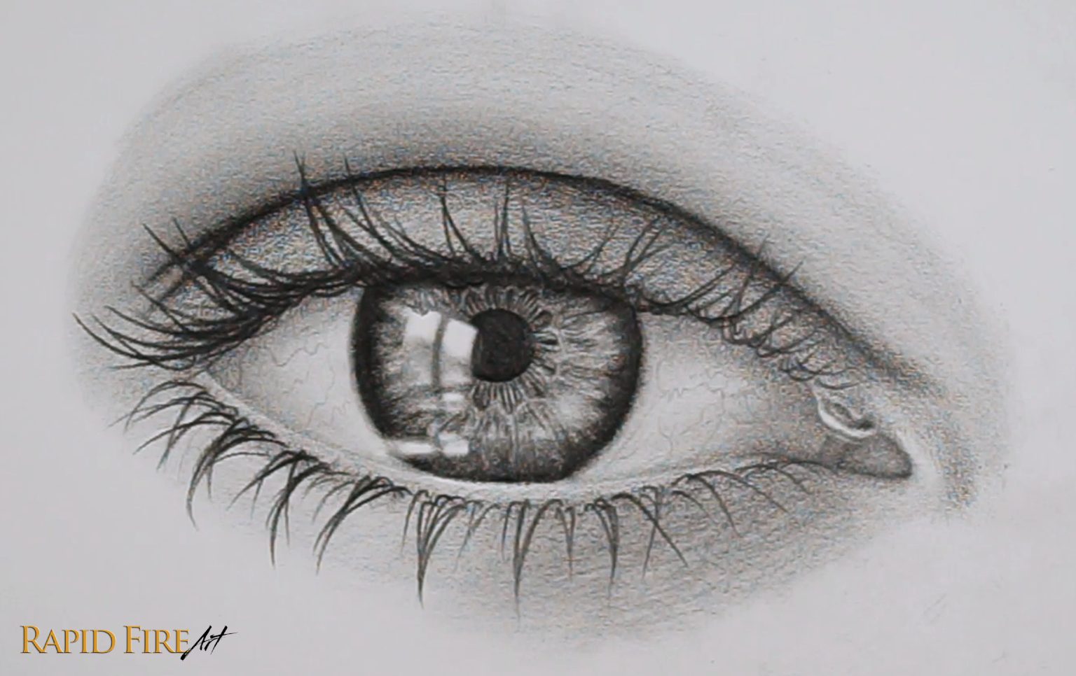 You can increase contrast further by darkening the edge of your iris and the cast shadow along the top using a 6B pencil.