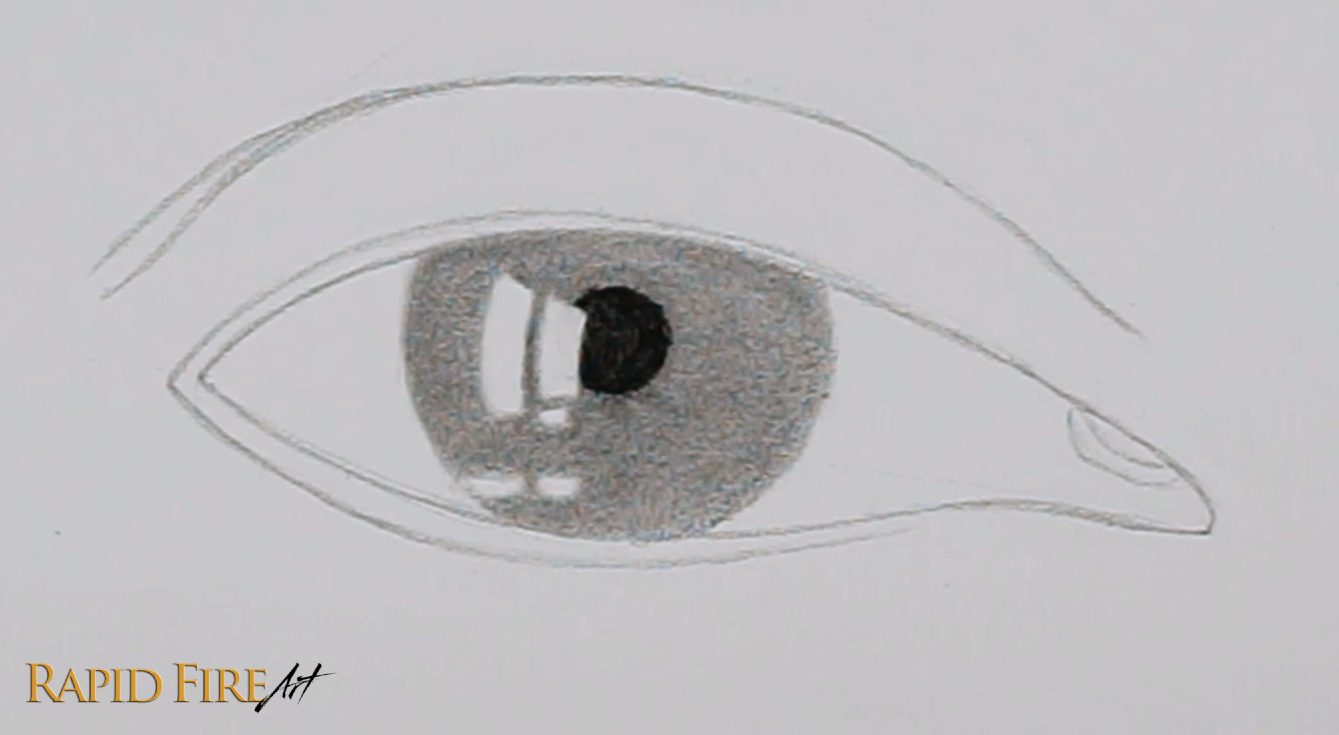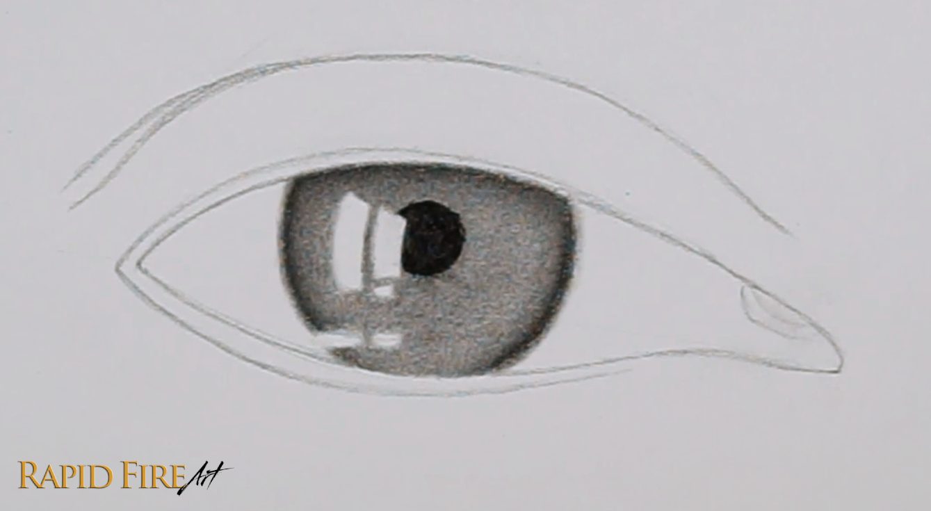 Shade your pupil as dark as you can get it. I used a 6B pencil for this. If you are using a harder pencil like an HB, avoid pressing too hard because it can warp the paper and/or make it overly reflective.