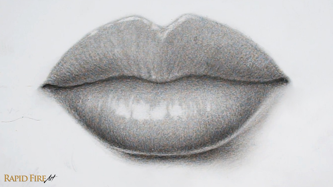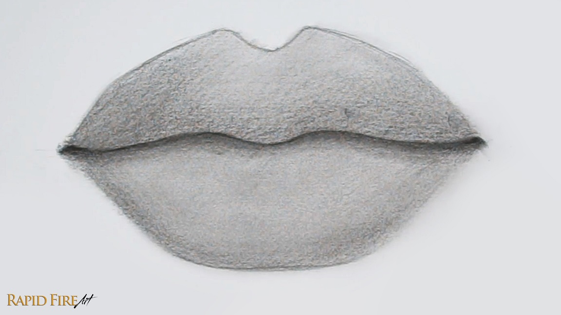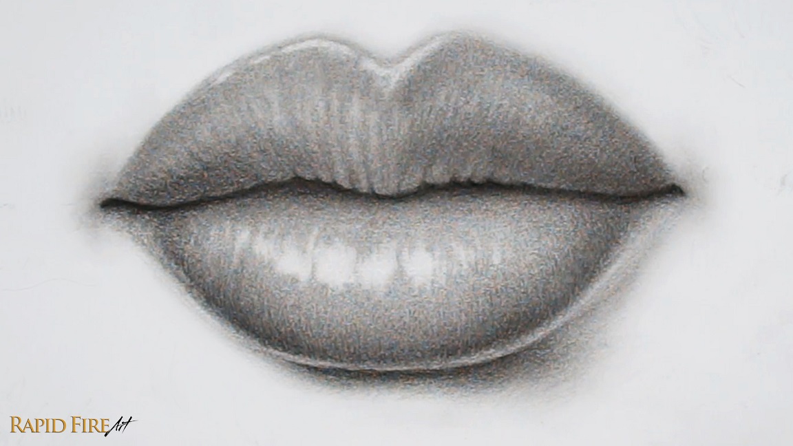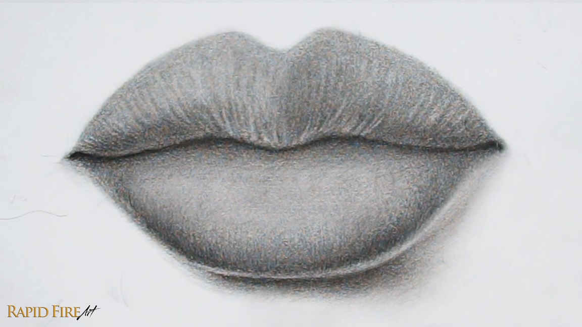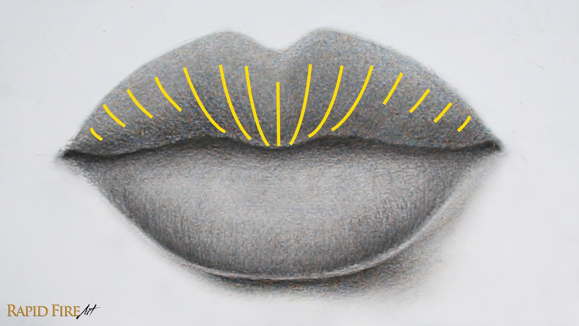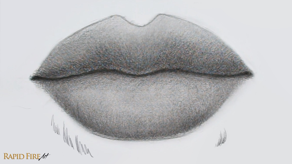 This can be done by first drawing triangle shapes along the bottom edge, avoiding the sides of the lip. Then, from the top of each triangle, flick your pencil up to create deep wrinkle lines that fade out at the top.